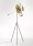 The double curves diffusor shape amplifies and directs the light produced by the LED light source making it soft, vibrant, warm and lightweight like a fluid surface. The diffusor is fixed to a balance structure, made of brass, supported by a slender tripod structure made of painted steal.